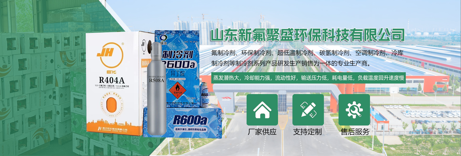 山東新氟聚盛環保科技有限公司是一家集氟類制冷劑、環保制冷劑、超低溫制冷劑、碳氫制冷劑、空調制冷劑、冷庫制冷劑、甲烷、二氟一氯甲烷、三氟甲烷、乙烷、一氟二氯乙烷、二氟一氯乙烷、六氟乙烷、四氟一氯乙烷、丙烷、五氟丙烷、丙烯、乙烯、正丁烷、異丁烷等制冷劑系列產品研發生產銷售為一體的專業生產商。現我公司制冷劑產品種類齊全,可以滿足不同客戶的多種需求。山東新氟聚盛環保科技有限公司致力于為大眾提供高品質的環保產品,以天然石油氣為原料生產出來的環保型制冷劑,其特點:蒸發潛熱大,冷卻能力強,流動性好,輸送壓力低,耗電量低,負載溫度回升速度慢。環保方面:碳氫制冷劑屬于純天然工質,因此對大氣無污染、對臭氧層無破壞、無溫室效應。